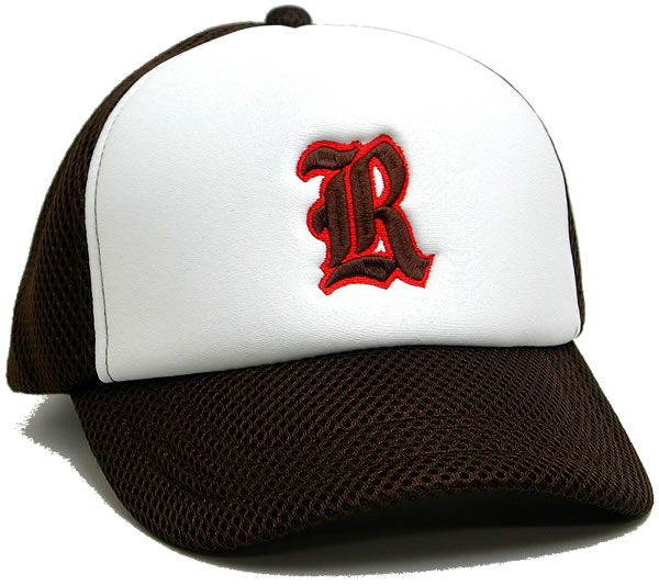 [アメリカンメッシュ【エアメッシュタイプ・ビッグサイズ】 白 x 茶(ツートーン) 刺繍入り