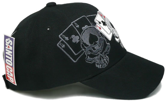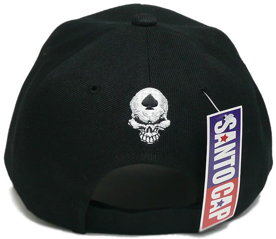 | [デザインキャップ 正面ドクロ+トランプ] ブラック *アメリカ直輸入のデザイン刺繍入りキャップです。 |