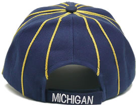 | デザインキャップ [M-ミシガン州立大学] ブルーに黄色ストライプ *アメリカ直輸入のデザイン刺繍入りキャップです。 |