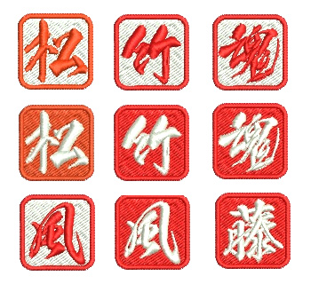 プレミアム書体【般若】フォントを落款風に刺繍したパターンです。