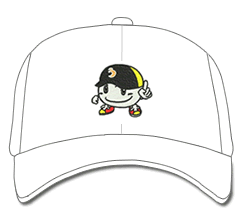●ボウシ.コム マスコット『キャッピー』くんの刺繍です。 帽子中央部分に刺繍がはいります。 刺繍が入る範囲は横62mm程度、縦55mm程度の大きさです。 ※左下に小さく入れるパターンもあります。 →こちらから。